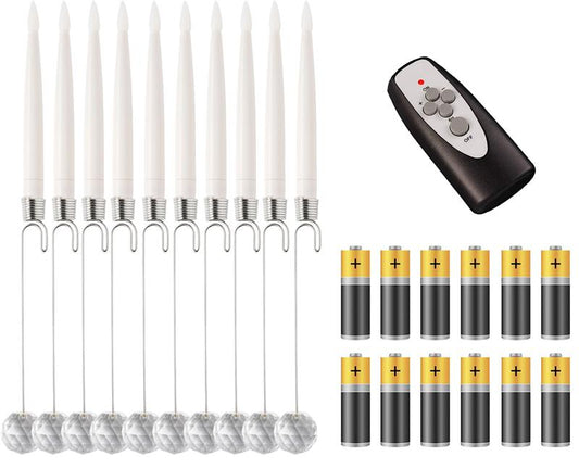 10 schwebende LED Mit Zauberstab als Fernbedienung Warm-weißes Kerzenlicht Flackereffekt Kerzenfarbe: weiß Mit transparenten Faden...