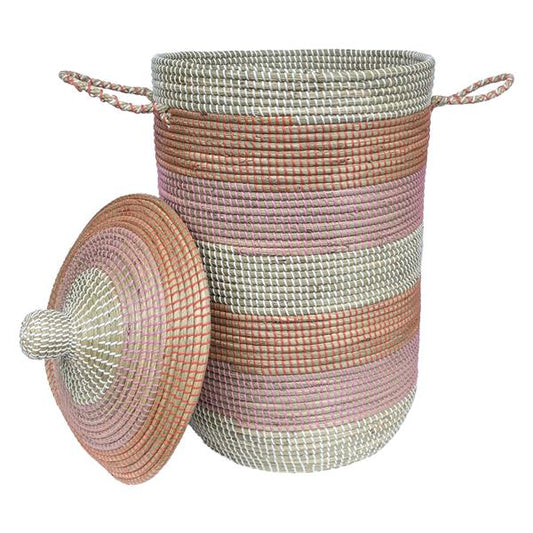 Aufbewahrungskorb mit Deckel und Griffen aus geflochtenem Seegras | ca. 80 cm | 123 Liter Nutzinhalt