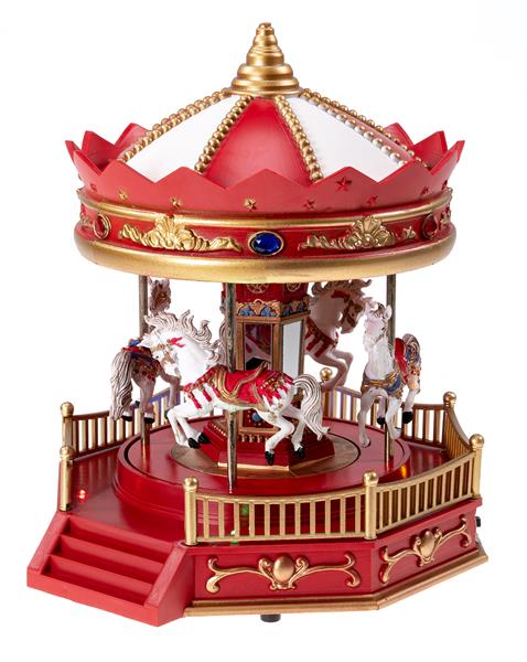 LED Karussell Zuschaltbare elektrische Spieluhr mit 8 Weihnachtsmelodien Batteriebetrieben (3x AA 1,5V Batterien, bereits im...
