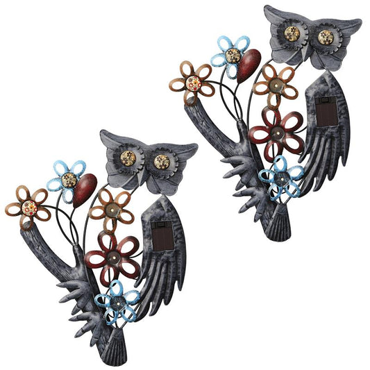 2-er Set Garten-Wanddekoration mit weißer LED Beleuchtung Motiv: Eule Aufhängevorrichtung an der Rückseite Bei Einsetzten...
