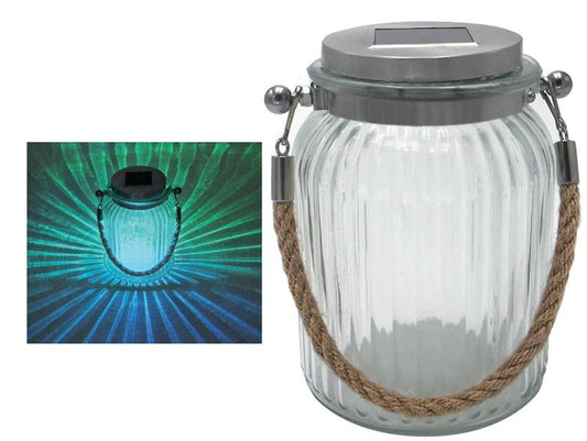 Glas Windlicht mit integrierter Solarlampe • Die Solarzelle lädt die Batterie tagsüber automatisch durch Sonnenlicht...
