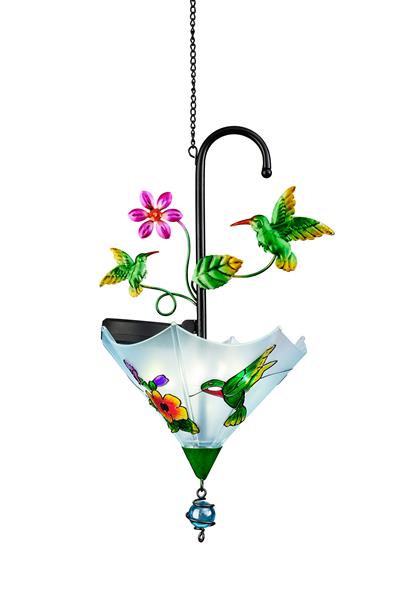 Moderne Dekoleuchte mit Solartechnik Form: „umgedrehter Regenschirm“ mit Blechfiguren Material: Figuren und Gestell aus Metall...