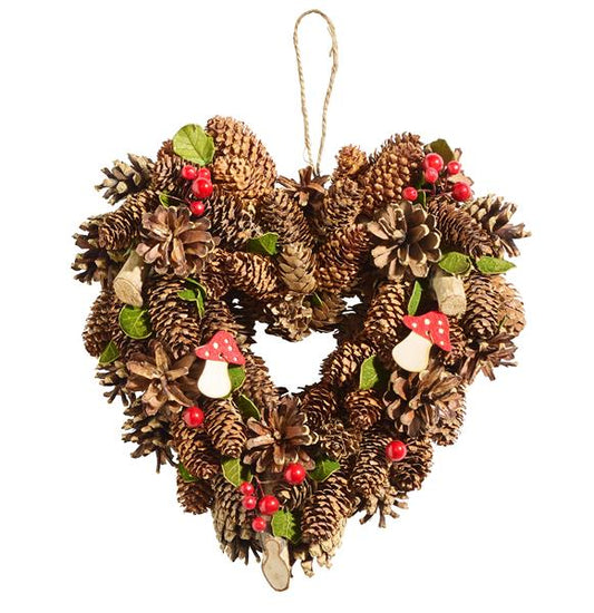 Herbst-Deko Kranz aus künstlichen und natürlichen Materialien Modell: Herzform mit Zapfen und Fliegenpilzen Dieser tolle...