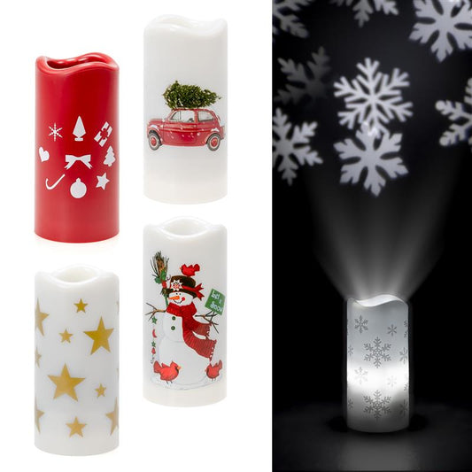 LED Kerze Mit Projektion Verschiedene Motive (nach Auswahl) Zaubert Weihnachtsmotive an die Decke EIN /...