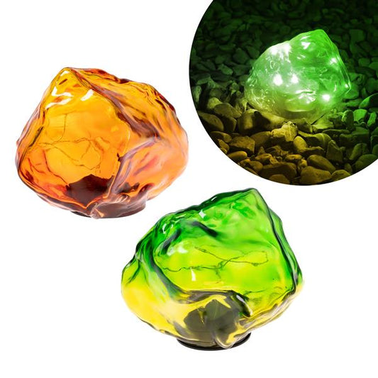 Hochwertige Steinleuchte, Solarlampe, Außenleuchte aus gefrosteten Kunstoff mit Erdspieß 8 verfügbare Farben: Rot, Grün, Blau,...
