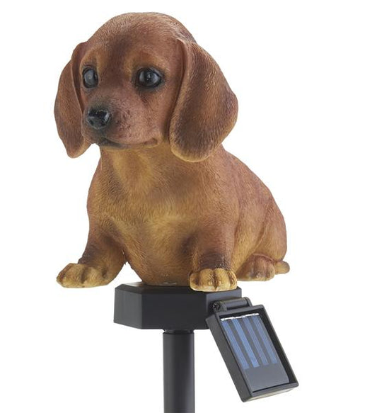 LED Solar Dekofigur Motiv: Hund Dackel Hubert Mobil einsetzbar 1 gelbe LED Mit Solarpanel Material:...