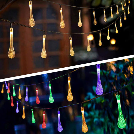 Solar Lichterkette mit 20 LEDs Im Wassertropfen / Regentropfen Design Tropfen in Glas-Look Gesamtlänge ca....