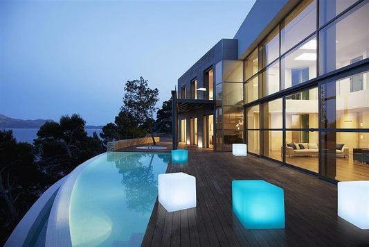 Hochwertige Würfelleuchte, Solarlampe, Außenleuchte aus gefrosteten Kunstoff 30 cm und Erdspieß Wasserdicht nach IP67, witterungsbetändig,...