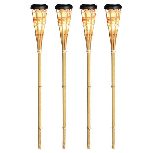 LED Bambus Gartenfackel 4er Set Solarbetrieben Kabellos Kein Batteriewechsel Warm-weiß beleuchtet 12 LEDs Flammeneffekt Ca....