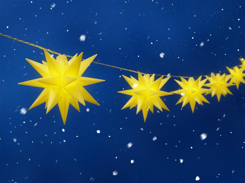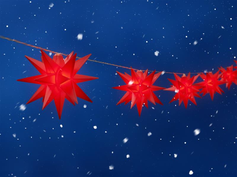 Die 10er 3D Leuchtstern Lichterkette sorgt mit ihrer warm-weißen LED Beleuchtung für stimmungsvolle Akzente im Innen- und geschützten Außenbereich.