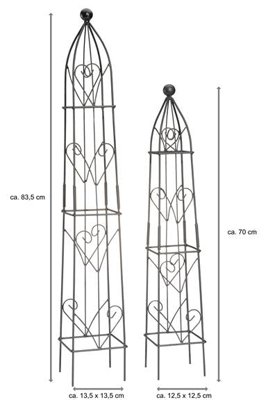 2er Set mit 2 Größen - Maße: Ranksäule groß: ca. 83,5 cm hoch, ca. 13,5 x 13,5 cm (BxT) / Ranksäule klein: ca. 70 cm hoch, 12,5 x 12,5 cm (BxT)