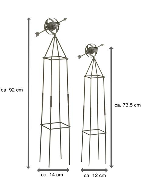 2er Set mit 2 Größen - Maße: Ranksäule groß: ca. 92 cm hoch, ca. 14 x 14 cm (BxT) / Ranksäule klein: ca. 73,5 cm hoch, 12 x 12 cm (BxT)