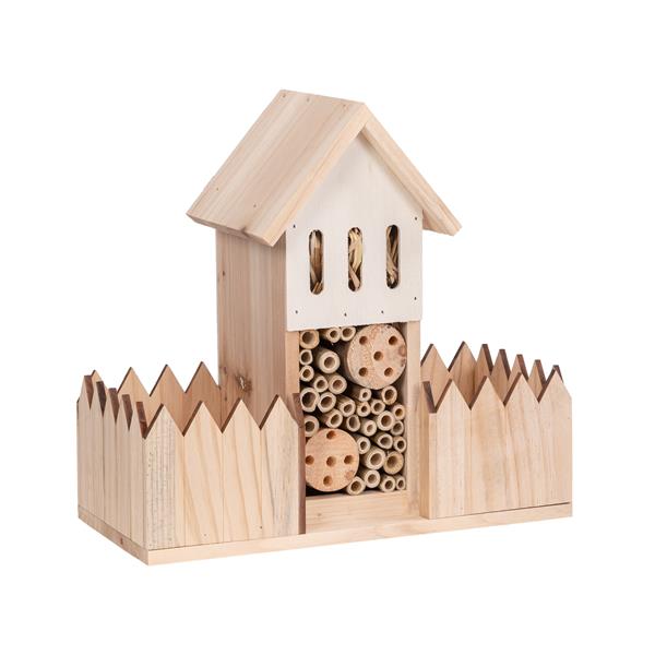 Dank der durchdachten 2-in-1-Funktion dient das obere Fach als Nist- und Überwinterungshilfe für Insekten, während das untere Blumenfach Platz für nektarreiche Pflanzen bietet (Pflanzen nicht im Lieferumfang enthalten). So wird eine optimale Nahrungsquelle für die kleinen Bewohner geschaffen.