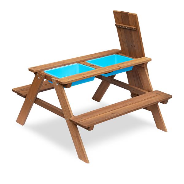 2 in 1 Kindersitzgruppe, Kombination aus Outdoor Kindersitzbank und Matsch-Wasserspieltisch, inkl. 2 Behälter, ca. 88 x 51 x 88 cm, Massivholz – lasiert, ab 2 Jahre
