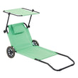 Für ein einfaches Handling verfügt die Liege über leichtgängige Räder. Am Strandplatz angekommen kann nun die Transportkarre zu einer Strandliege umgebaut werden. Der Umbau ist schnell und ohne Werkzeug möglich.