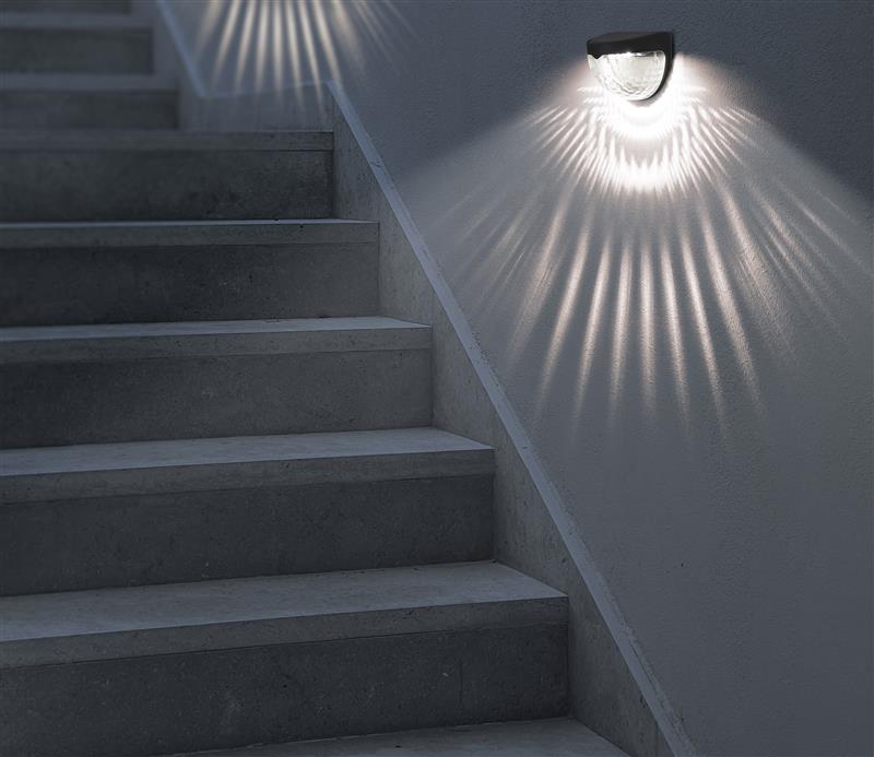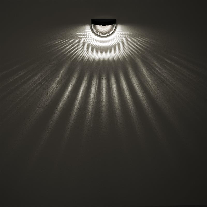 Dank der eingebauten Solarzellen wird die Lampe während der Sonneneinstrahlung aufgeladen, sodass sie nachts automatisch leuchtet. Sie kann an verschiedenen Oberflächen befestigt werden und eignet sich für die Montage an Zäunen und Wänden.