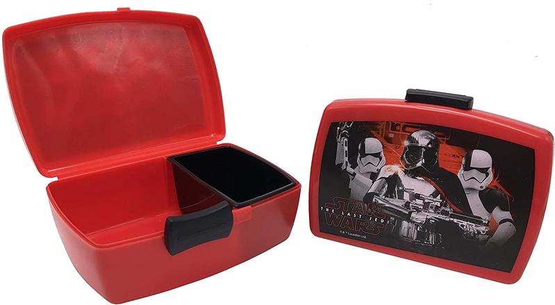 2-teiliges Lunchboxen-Set bestehend aus: 1x Brotdose mit Innenfach & 1x 600 ml Aluminium Trinkflasche jeweils im Star Wars (The Last Jedi) Design