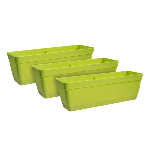 Entdecken Sie unser praktisches 3er Set Balkonkästen mit Wasserspeicher, ideal für Ihren Garten oder Balkon! Jeder Pflanzkasten ist ca. 50 cm breit und bietet ausreichend Platz für Ihre Lieblingspflanzen.