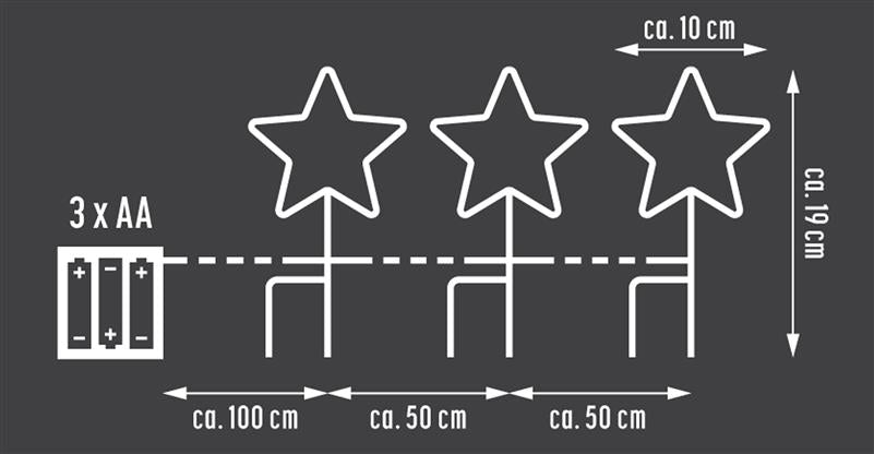 - Insgesamt 60 LEDs (pro Stern 20 LEDs)