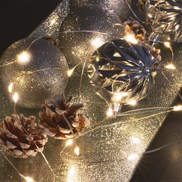 Mit ihrem dezenten, biegsamen Draht lässt sich der LED Lichterdraht individuell formen und vielseitig dekorieren. Ob als romantische Tischdeko, festliche Fensterbeleuchtung oder gemütliche Raumstimmung – die warmweißen LEDs schaffen immer ein harmonisches Lichtambiente.