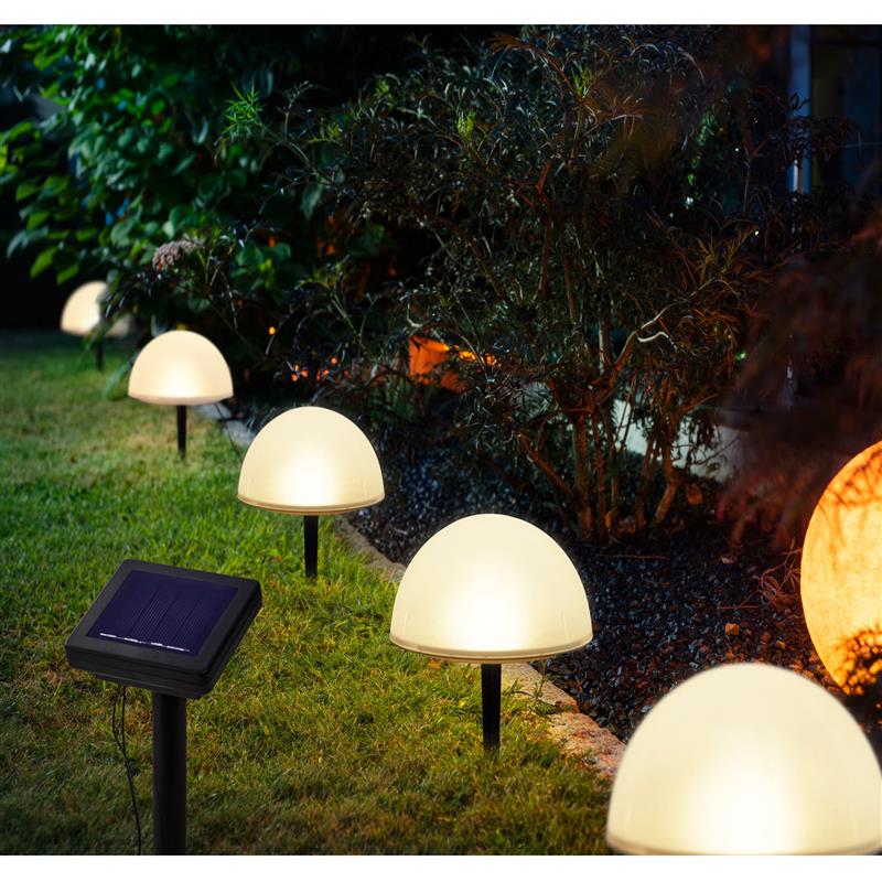 5-er Set Solar Gartenstecker Halbkugeln | mit Solar-Panel (warm-weiß)