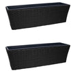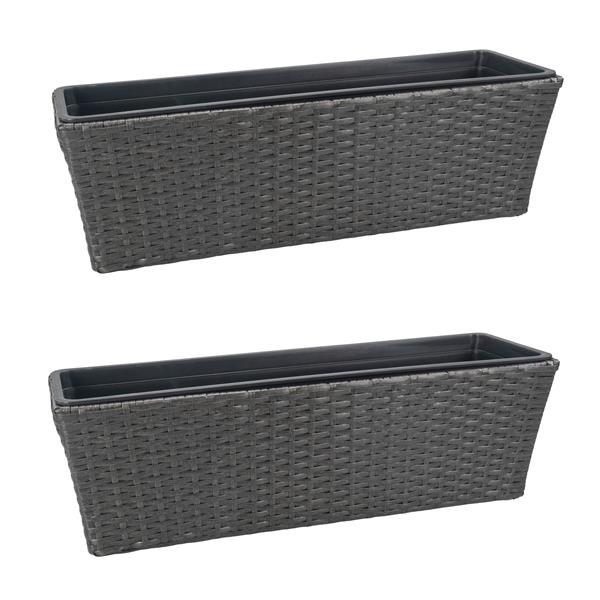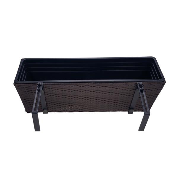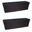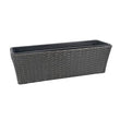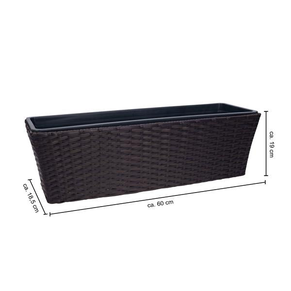 Balkonkasten mit Halterung in Rattan-Optik | ca. 60 cm breit | ca. 11 Liter Fassungsvolumen | ohne Wasserspeicher | inkl. Pflanzschale | hochwertiger Kunststoff | Blumenkasten zum Hängen oder Hinstellen