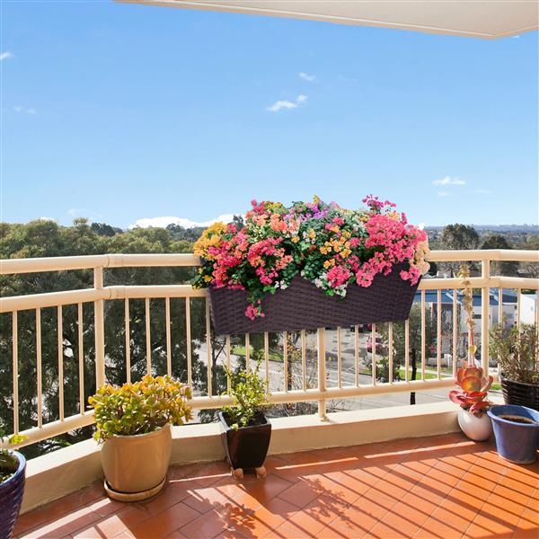 Verleihen Sie Ihrem Balkon oder Ihrer Terrasse mit unserem Balkonkasten in moderner Rattan-Optik einen Hauch von Eleganz und Natürlichkeit!