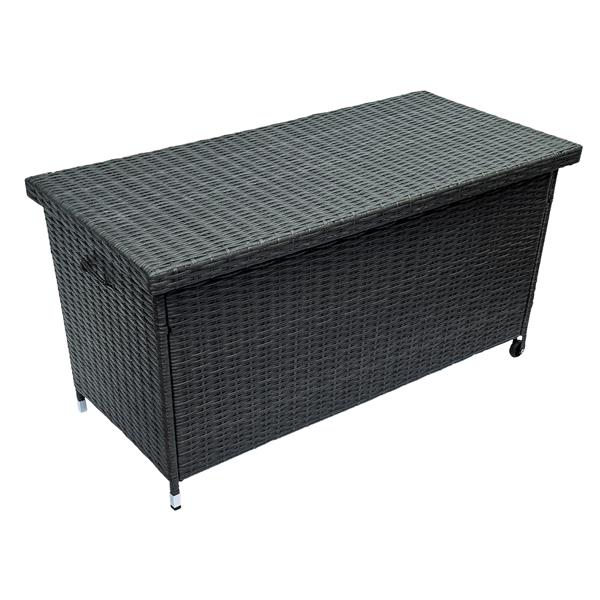 Diese moderne Auflagenbox aus Polyrattan in stilvoller Rattan-Optik ist die ideale Lösung zur Aufbewahrung von Sitzkissen, Auflagen und Gartenutensilien im Außenbereich. Mit großzügigen Maßen von ca. 121 x 60 x 56 cm (BxHxT) und einem Fassungsvermögen von ca. 270 Litern bietet die Kissenbox ausreichend Stauraum und Schutz für Ihre Gartenaccessoires.