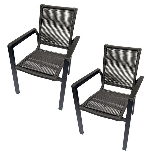 belavi® 2er Set Rope Stapelstuhl für Garten & Balkon – leichter Gartenstuhl mit moderner Seilbespannung, robust & pflegeleicht, ca. 56 x 89 x 61 cm, grau