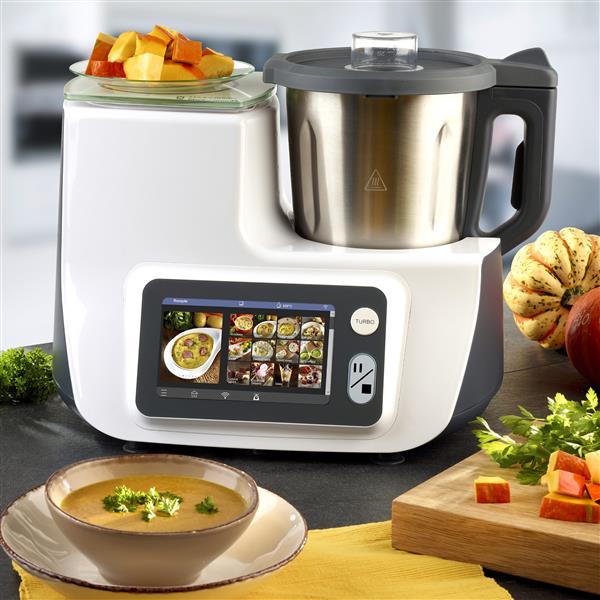 Die COMV! Multifunktions-Küchenmaschine mit Kochfunktion und W-Lan ist der perfekte Allrounder für Ihre Küche. Mit ihrem modernen Design, einer intuitiven Bedienung und vielseitigen Funktionen wird Kochen und Backen zum Vergnügen. Das übersichtliche 7-Zoll-Farbdisplay ermöglicht eine einfache Steuerung direkt über den Touchscreen. Alternativ kann die Maschine bequem per Smartphone oder Tablet über die App bedient werden. Dank 200 vorinstallierter Rezepte können Sie sofort loslegen und sich inspirieren lassen. Eigene Rezepte lassen sich ebenfalls über die App hinzufügen, auf die Küchenmaschine übertragen oder mit anderen Nutzern teilen. Eine Einkaufslisten-Funktion macht die Planung Ihrer Gerichte noch einfacher.