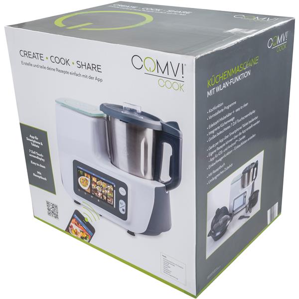 COMV! Küchenmaschine mit Kochfunktion und WLAN – App-Steuerung | Multifunktionsküchenmaschine | 7 Zoll Farbdisplay | vorinstallierte Rezepte | 1200 Watt | 12 Funktionen