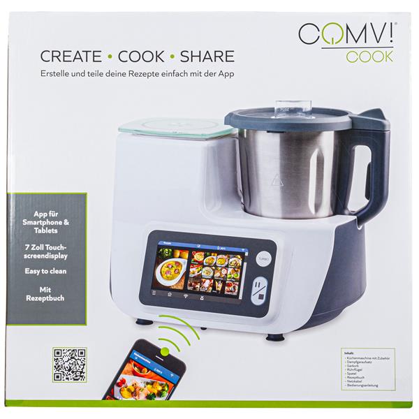 COMV! Küchenmaschine mit Kochfunktion und WLAN – App-Steuerung | Multifunktionsküchenmaschine | 7 Zoll Farbdisplay | vorinstallierte Rezepte | 1200 Watt | 12 Funktionen