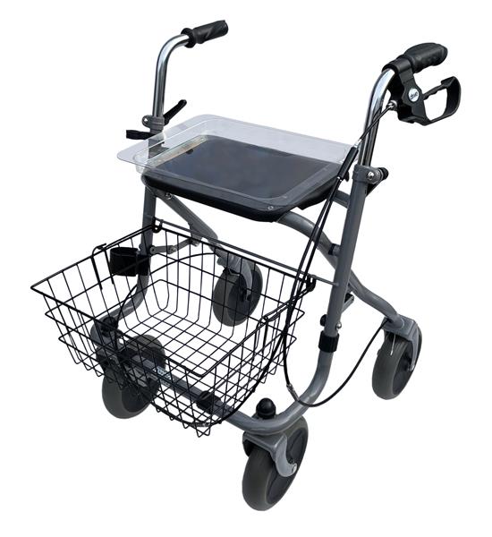 Drive Medical Migo 2G Rollator silber 190/50 mit Einhandbremse links | inkl. Korb, Tablett und Stockhalter