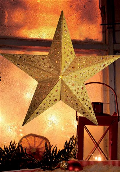 Die Aussparungen, durch welche das warme Licht scheint, sind in Zweigoptik!