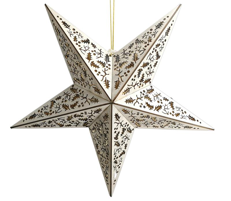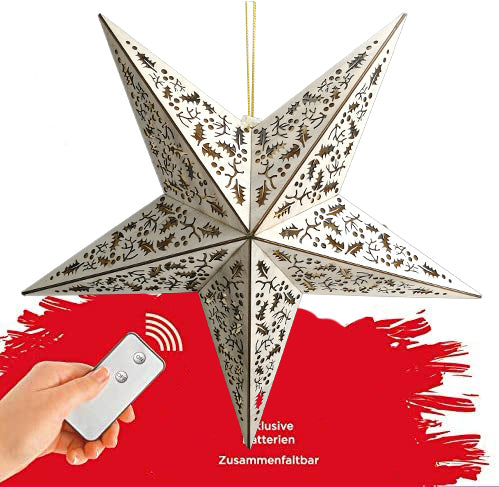 Holzstern | 40 cm | inkl. 10er LED Lichterkette und Fernbedienung (Mistelzweig-Optik)