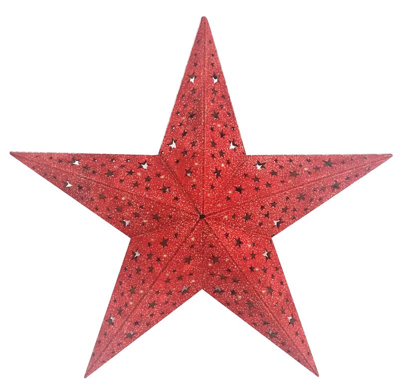 Holzstern | 40 cm | inkl. 10er LED Lichterkette und Fernbedienung (Rot-Glitzer)