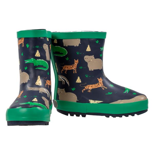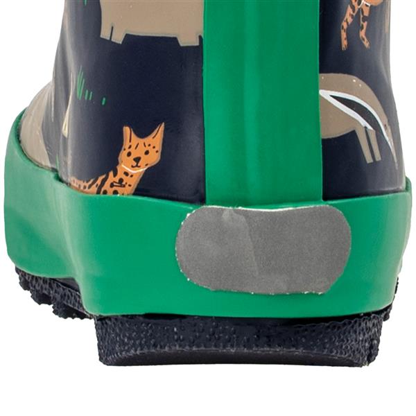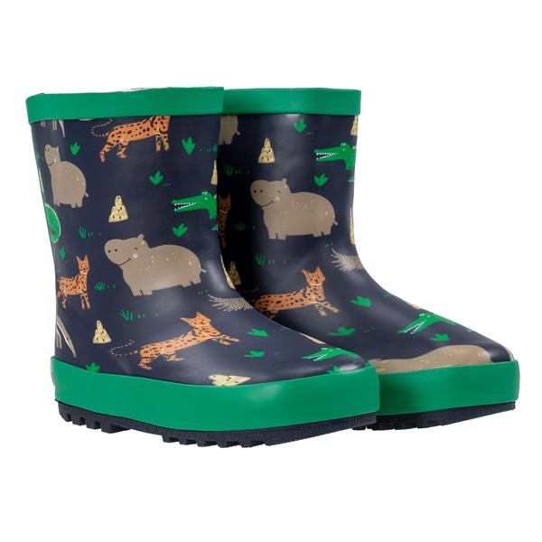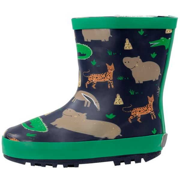 Die Kinder Regenstiefel in navy-grün sind perfekt für kleine Abenteurer. Mit dem Aufdruck "Wilde Tiere" werden sie zum Blickfang bei jedem Regenspaziergang.