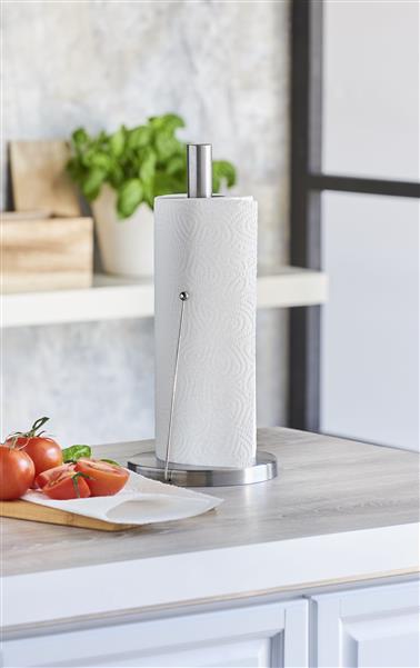 Ein Küchenrollenhalter sollte in einem gut sortierten Haushalt nicht fehlen. Mit solchen einem Halter haben Sie immer die Papiertuchrolle griffbereit. Dieser Rollenhalter ist mit einem komfortablen seitlichem Abrollstop ausgestattet.
