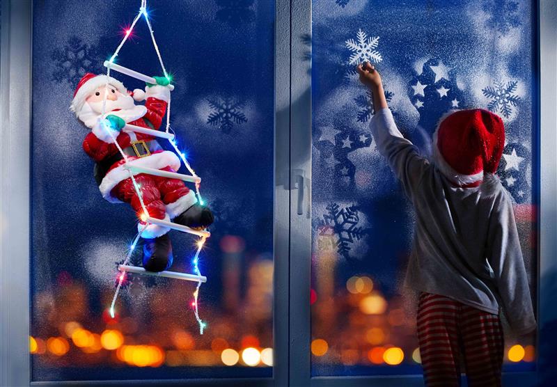 Kletternder Weihnachtsmann mit LED Strickleiter