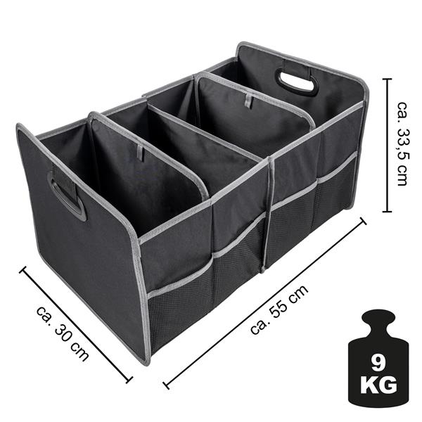 Kofferraum Organizer faltbar, stabile Kofferraumtasche, schwarz, ca. 55x30x33,5 cm, max. mit 9 kg belastbar, Faltbox, endlich Ordnung im Auto