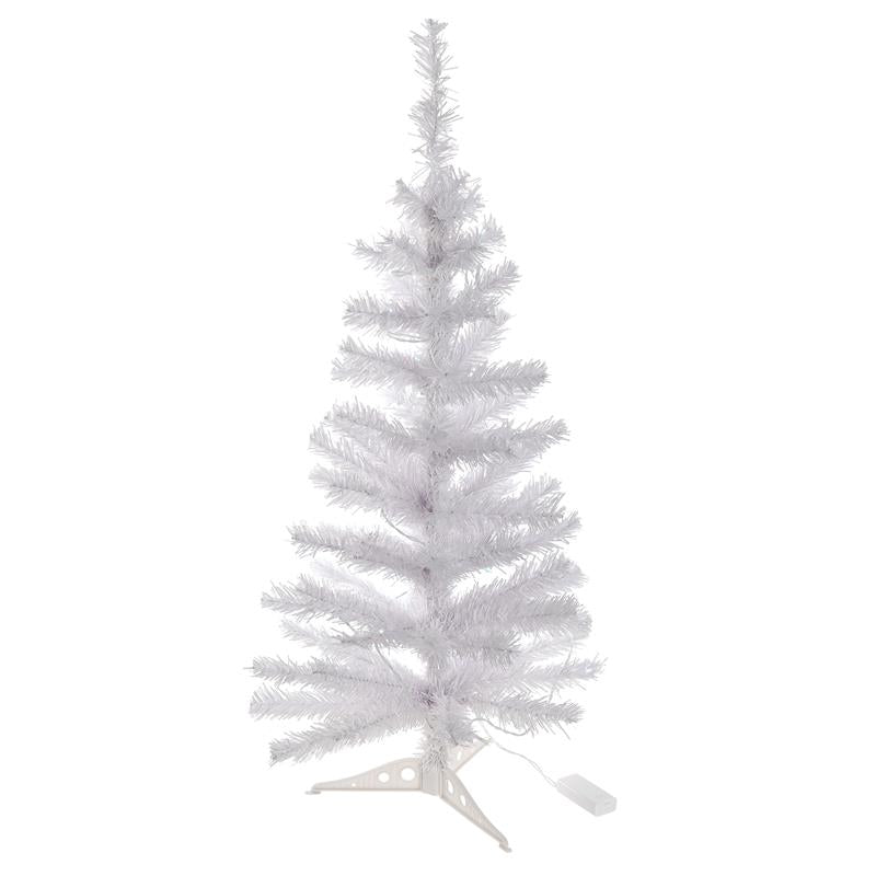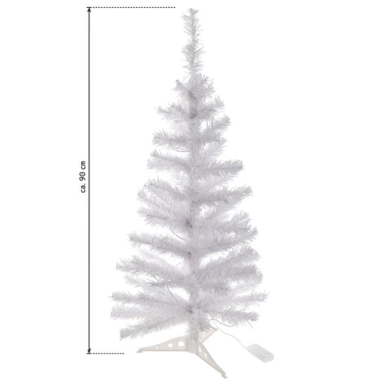 Künstlicher weißer Weihnachtsbaum mit 20er Lichterkette | ca. 90 cm hoch | kalt-weiß beleuchtet | PVC Tannenbaum
