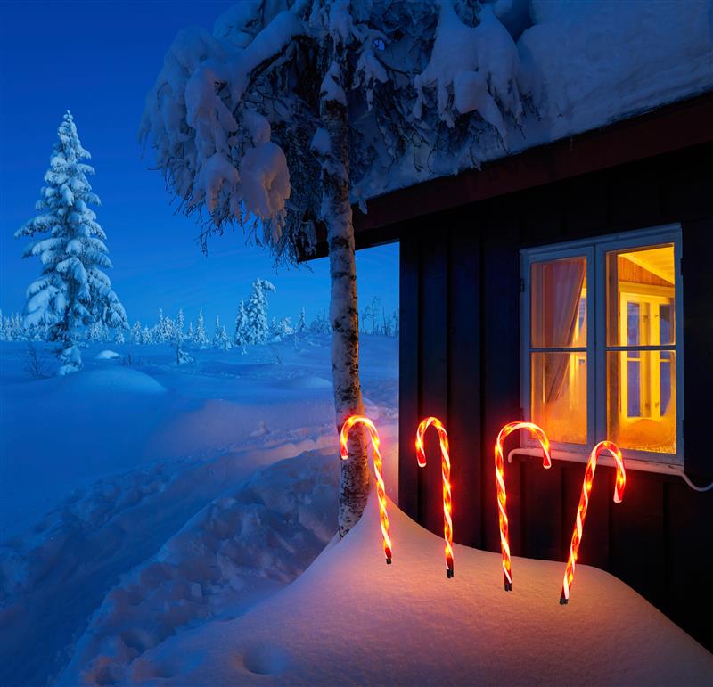 Die Zuckerstangen sorgen im Vorgarten, im Eingangsbereich, im Garten oder auf der Terrasse für eine angenehme winterliche Atmosphäre. Im eingeschalten Zustand wird diese moderne LED Deko Blicke auf sich ziehen.