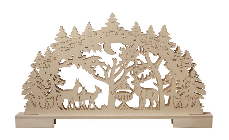 LED Lichterbogen aus Holz mit 10 Led beleuchtet, warm-weiß, mit Timer (Wald)