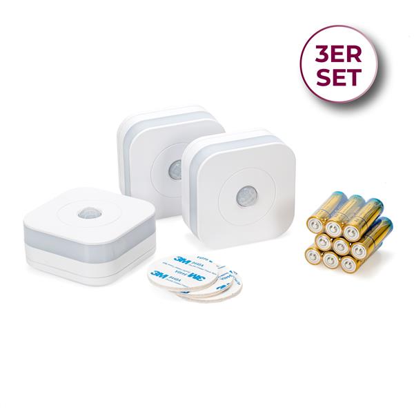 LED Nachtlicht mit Bewegungsmelder für Innen und Außen (IP44) | 3 Stück | auch als Treppenbeleuchtung, Treppenlicht nutzbar | 2 Modi | batteriebetrieben