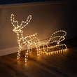 LED Rentier mit Schlitten | 11 m Lichterschlauch | 264 Lichter | für innen und außen | warm-weiß beleuchtet | 160 x 30 x 68 cm | inkl. Metall-Heringe