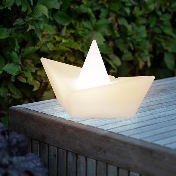 [Blickfang] - Die moderne Deko-Solarlampe ist aus hochwertigem und bruchfestem Kunststoff gefertigt. Die Solarleuchte ist im Stil eines Papierschiffchen gefertigt und wird so zu einem Hingucker.