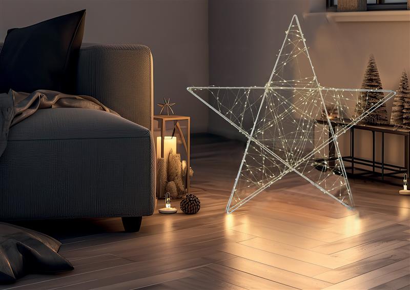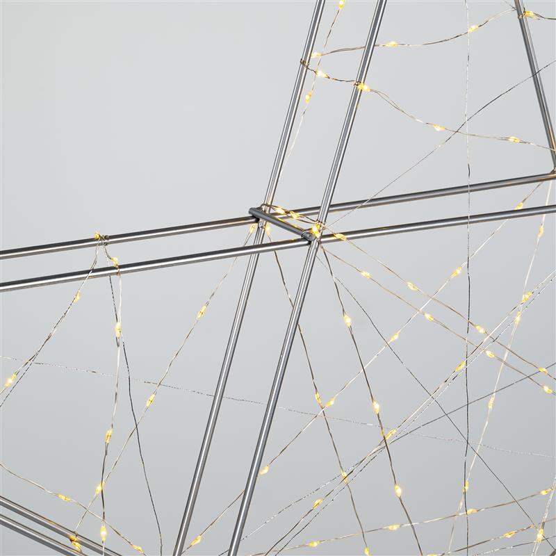 Mit einer imposanten Größe von etwa 78 x 6 x 78 cm wird dieser LED-Stern zum Blickfang in jedem Raum. Die 240 integrierten LEDs sorgen für eine helle und stimmungsvolle Beleuchtung, die Ihr Zuhause in ein warmes und festliches Licht taucht. Der Stern ist aus robustem Metall gefertigt und mit einem stabilen Metalldraht umgeben, der ihm Stabilität und Langlebigkeit verleiht.