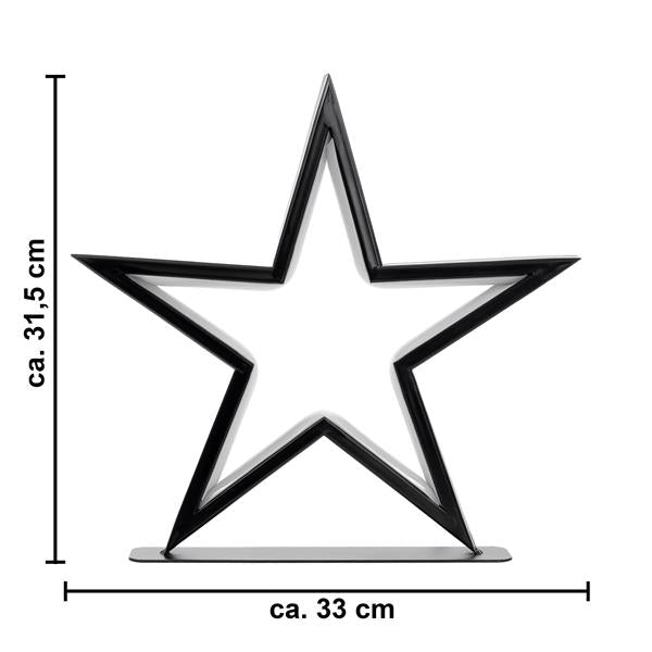 Die moderne LED Stern-Lampe aus schwarzem Metall ist ein stilvolles Deko-Highlight für die Weihnachtszeit. Mit einer Größe von ca. 33 cm eignet sie sich perfekt zur Beleuchtung von Tischen, Schränken oder Fenstern. Der Stern ist mit 144 warm-weißen LEDs ausgestattet, die eine gemütliche Atmosphäre schaffen.