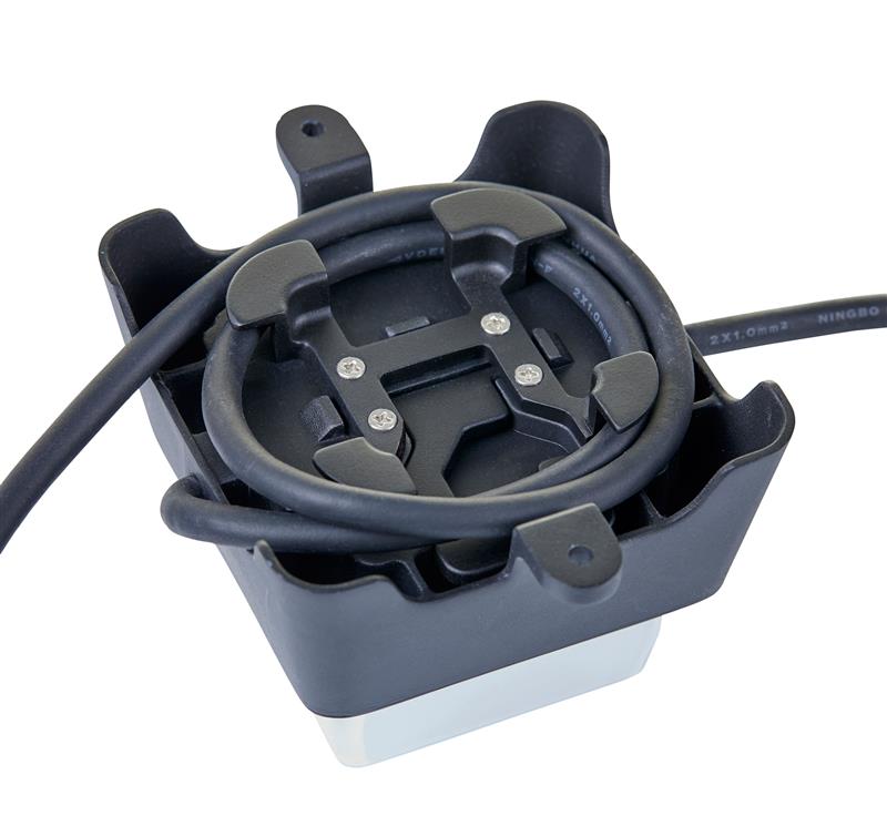 Der Anschluß kann per konventionellen Schuko-Stecker erfolgen, das Leuchtenset kann aber auch per Kabel festverdrahtet werden.