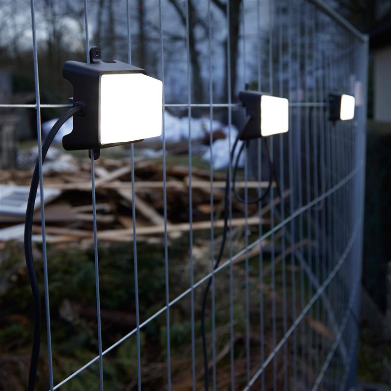 Die Bauleuchten-Kette kann mit bis zu 3 Sets erweitert werden. So erhalten Sie eine Lampe mit einer Gesamtleistung von ca. 96 Watt.